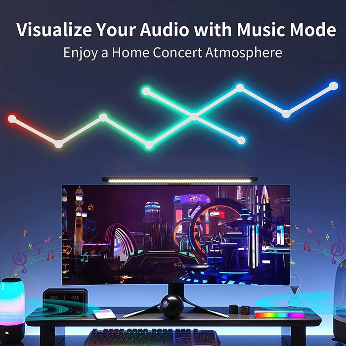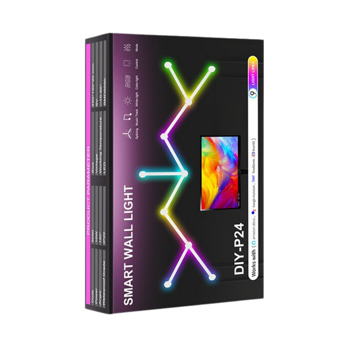 • Durable ABS and PC design with 18 LED beads per column (6 columns) plus 7 corner pieces. RGBIC lighting powered by USB 5V/10W. Mobile app or IR remote control for easy customization. Includes USB cable, 24-key remote, 3-key controller, and English manual. Size: 240×18×10 mm | Weight: 491 g